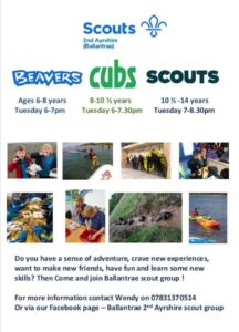 Or via our Facebook page – Ballantrae 2nd Ayrshire Scout Group